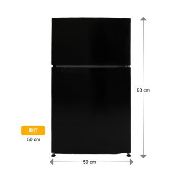 冷蔵庫はシンプルなデザインとスリムボディで、ワンルームでもすっきりと設置可能。スリムでも使いやすい商品です。