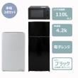 • らくらく家電3点セット(冷蔵庫110~120L)(冷蔵庫・電子レンジブラック) レンタル