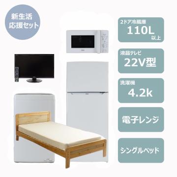 冷蔵庫(110L~120L)と4.2k洗濯機と電子レンジと22インチ液晶テレビとシングルベッドの5点セットになります。