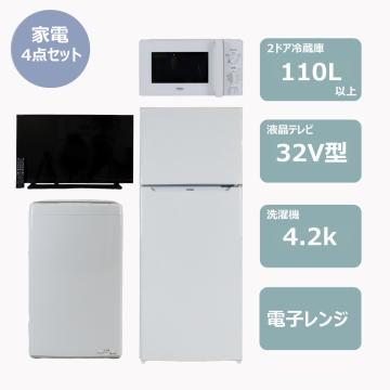 冷蔵庫(110~120L)と4.2k洗濯機と電子レンジと32インチ液晶テレビの家電4点セットになります。