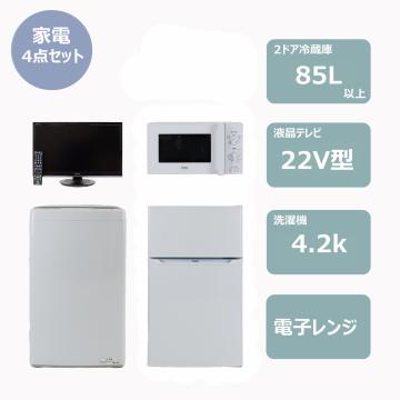 冷蔵庫(85~95L)と洗濯機と電子レンジと22インチ液晶テレビの家電4点セットになります。