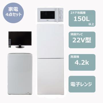 冷蔵庫(150~160L)と4.2k洗濯機と電子レンジと22インチ液晶テレビの家電4点セットになります。