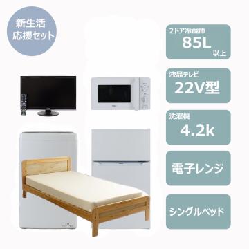 冷蔵庫(85~95L)と4.2k洗濯機と電子レンジと22インチ液晶テレビとシングルベッドの5点セットになります。
